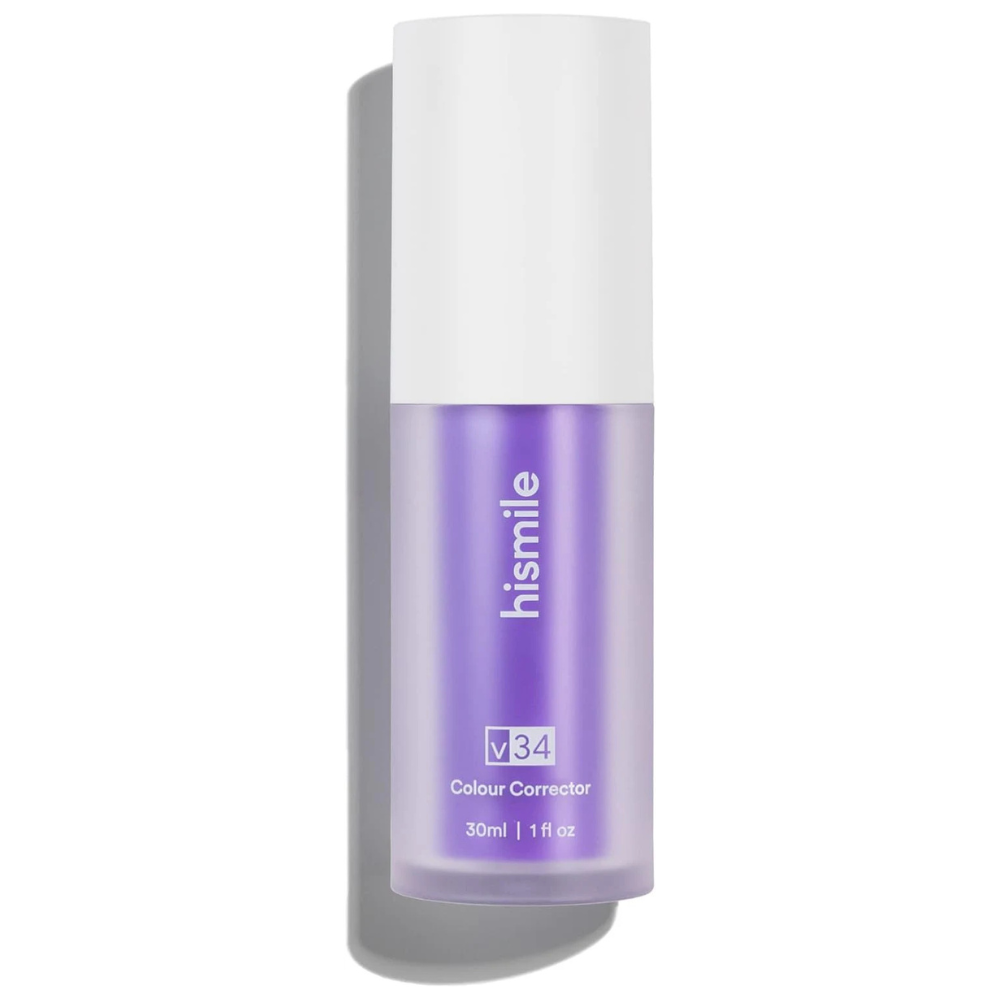 Hismile V34 is a colour-correcting teeth brightening serum that uses purple pigments to neutralize yellow tones, giving your smile a brighter appearance instantly.